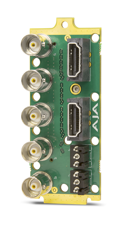 OG-4K2HD is an openGear card that down-converts professional 3G-SDI 4K/UltraHD signals to HD resolution using AJA’s high-quality scaling for cost-effective monitoring and conversion. OG-4K2HD’s HD-SDI and HDMI outputs are live simultaneously, producing fantastic-looking HD images for on set monitoring or direct-to-air broadcast.